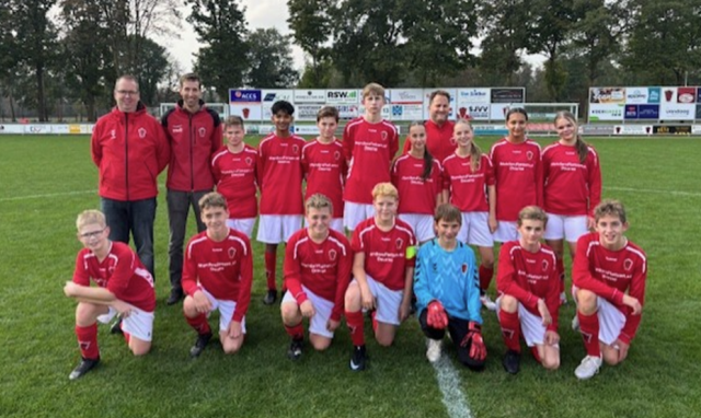 De spelers zijn in nieuwe tenues worden gestoken door Manders Fietsen Deurne!