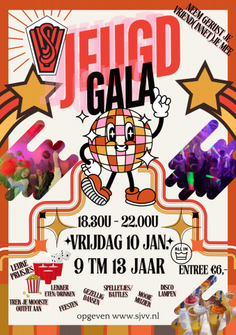Op vrijdag 9 januari houdt SJVV weer een jeugdgala voor onze jeugdleden en hun vriendjes en vriendinnetjes. Kom zelf in je mooiste feestkleding, we hebben een prijs voor de best geklede jongen en meisje!