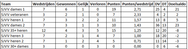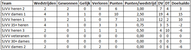 | SJVV heren 2 | 22 | 7 | 7 | 8 |